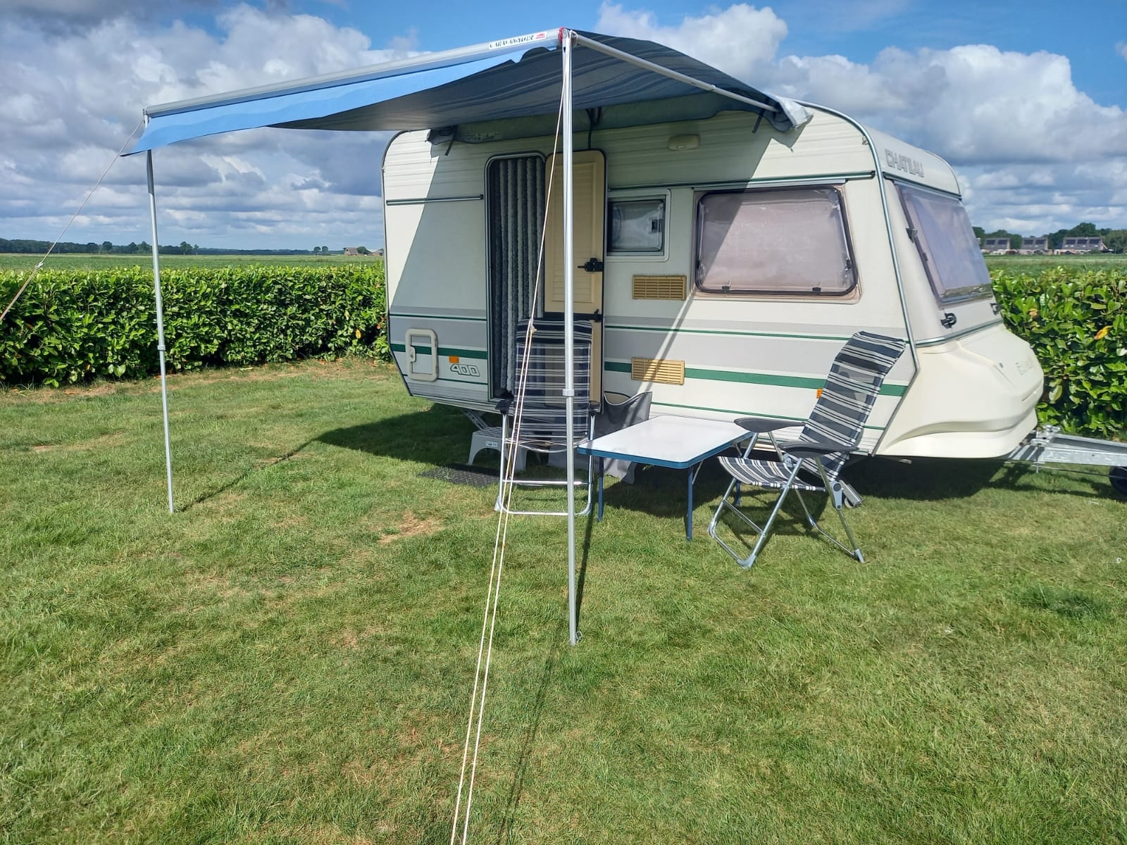 Voor €45,- per nacht kunt u (met maximaal 2 personen) slapen in deze compleet ingerichte caravan. Dit is ook inclusief gebruik gas. Wel graag eigen beddengoed meenemen. Zie hieronder een foto van de huurcaravan. Minimaal verblijf vanaf 2 nachten. - Honden zijn welkom (gratis). Aangeven bij reserveren. Honden zijn niet toegestaan in de huurcaravan.